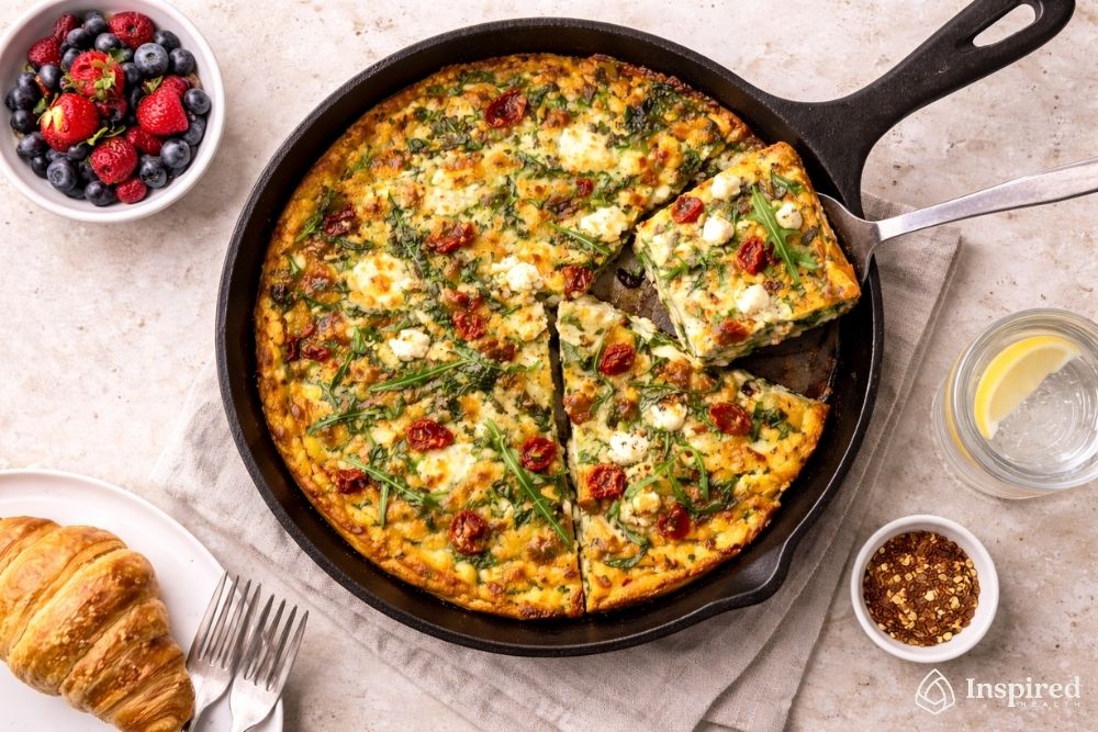 Savory Arugula & Goat Cheese Frittata with Sun-Dried Tomatoes