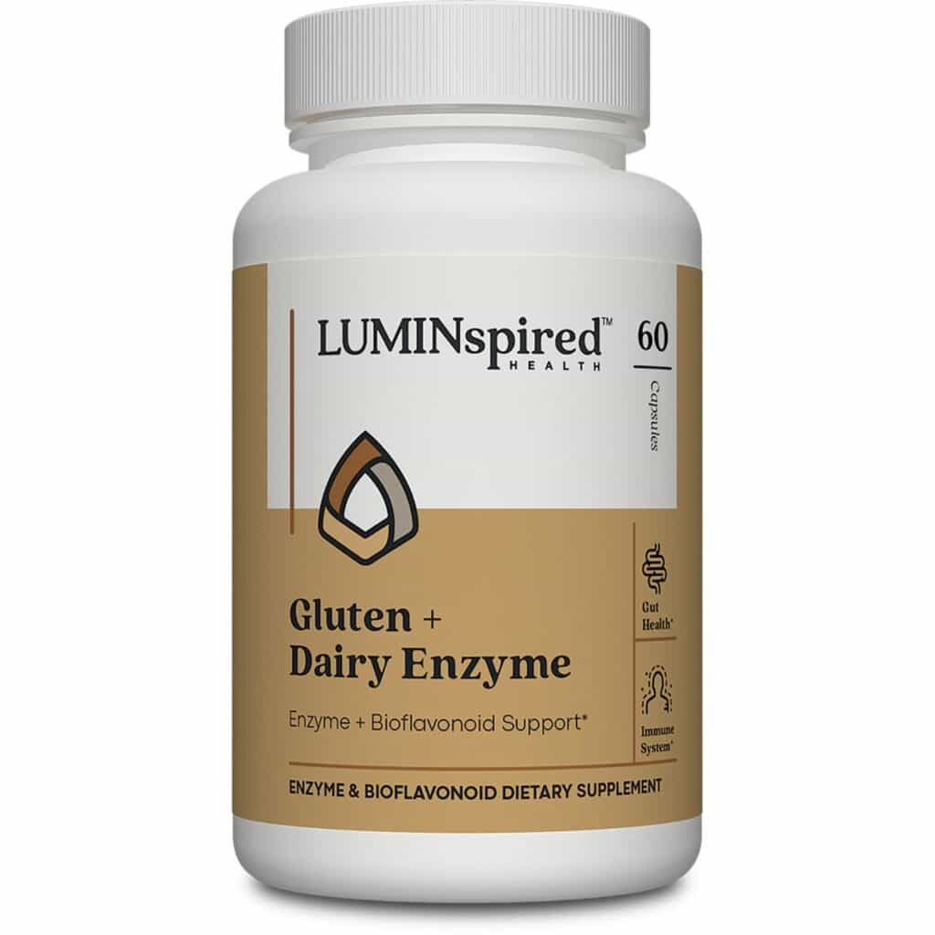 Gluten + Dairy Enzyme is a one-of-a-kind digestive aid that is designed not only to offer powerful DPP IV gluten-digestive enzymes but also to support the intestines, using specially targeted bioflavonoids. This formula also supports the digestion of the prolamine-rich peptides in gliadin and aids the intestinal barrier. Key ingredients include quercetin, luteolin, and lycopene.